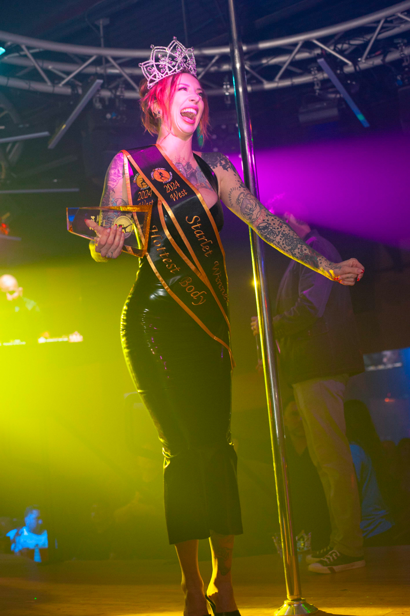 “My first EDI contest was a blur of magic, Texas BBQ and hair flips,” says Rachel Rampage. “I want to thank Dave Manack, Kris Kay and Roxi D’Lite. The three of you brought out a spark in me that was previously dormant. Your continuous support and words of encouragement are very much appreciated. Thank you to all of the competitors who brought sparkle and kindness. Especially the Starlet First Runner-Up, Lauren Lotus. You are a wonderful human and an absolute joy to be around. I really enjoy how you bring playfulness and love to a competition. Your sportsmanlike conduct is top tier. Thank you Lauren Phillips and Danny Meyers for putting on a show up there as well! You are both very entertaining and did a great job keeping up the energy in between ladies. Lastly, a HUGE thank you to Rob Aiken and Justin Hagberg. I literally couldn’t have put on my show like I did without you two working tirelessly from the side stage. Looking forward to more magic next year!”